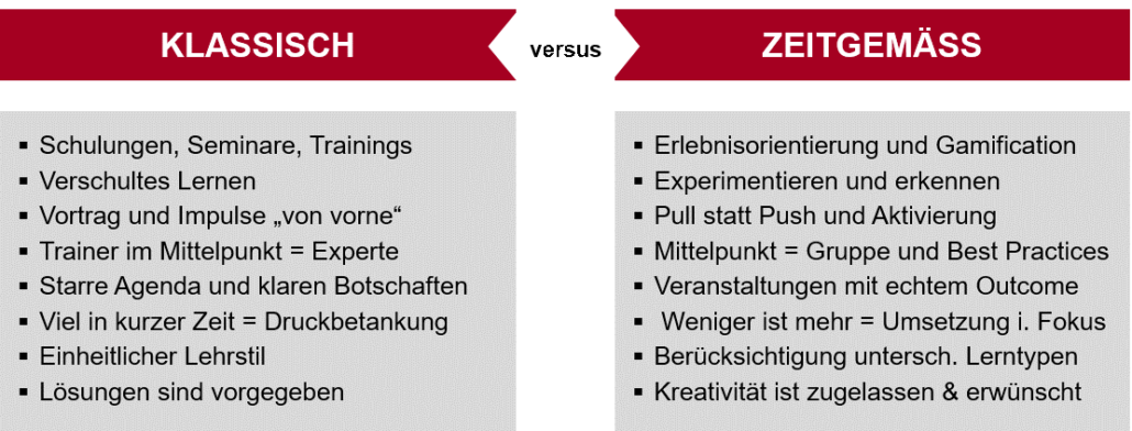 Beispielsweise gibt es längst bekannte Prinzipien betrieblicher Veränderungsarbeit. So existiert seit vielen Jahren die sogenannte 72 Stunden-Regel“, welche besagt, dass alles was nicht innerhalb von 3 Tagen nach einem Training umgesetzt wird, nie stattfindet.